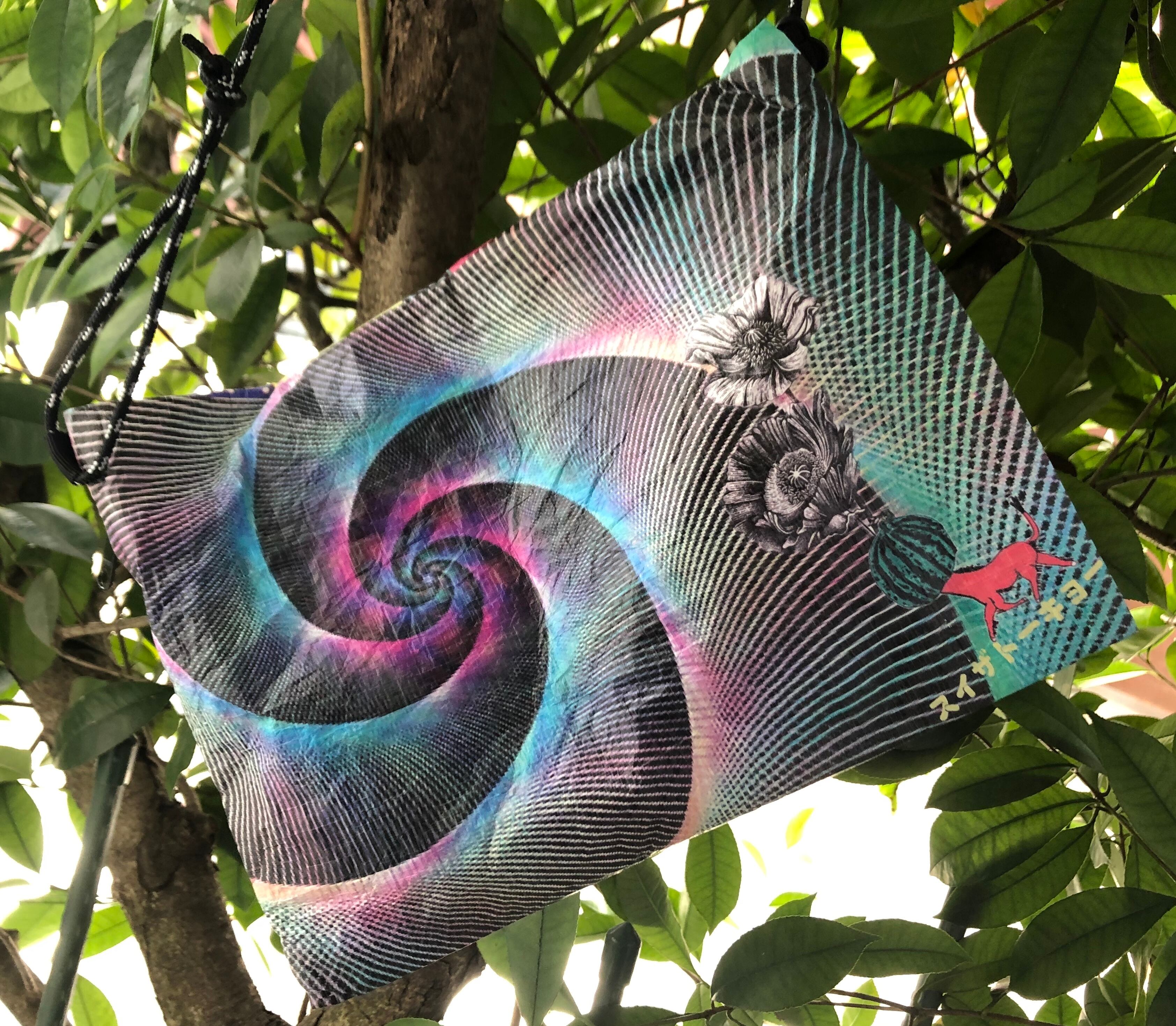 インナープリント(中)には宇宙へのエントランスであるチビるちゃんがデカデカと、バックプリントには宇宙の裏側にある穏やかで静かなチルスペースをPRINT。