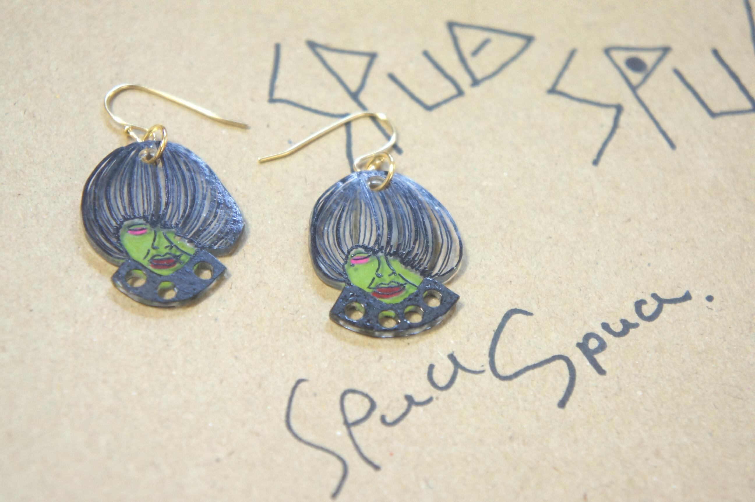 プラシートにイラストレーションを落とし込んだフックタイプのピアス。